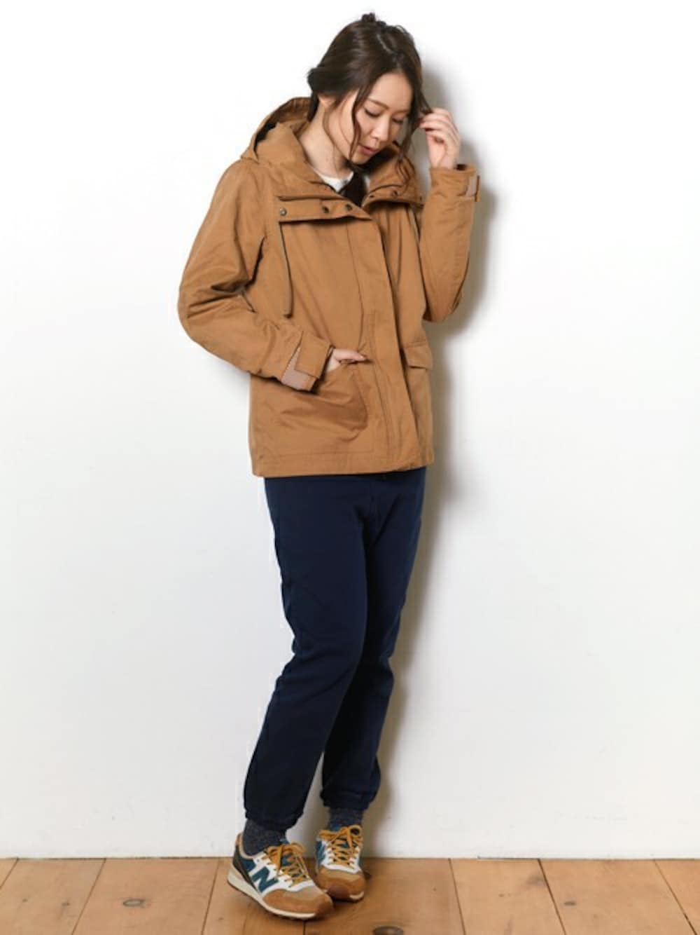 動きやすくて、合わせやすいジョガーパンツ。寒い季節は靴下とレイヤードして楽しめますよ♪ マウンテンパーカーと合わせて、ライトなアウトドアコーデにしてみました^^