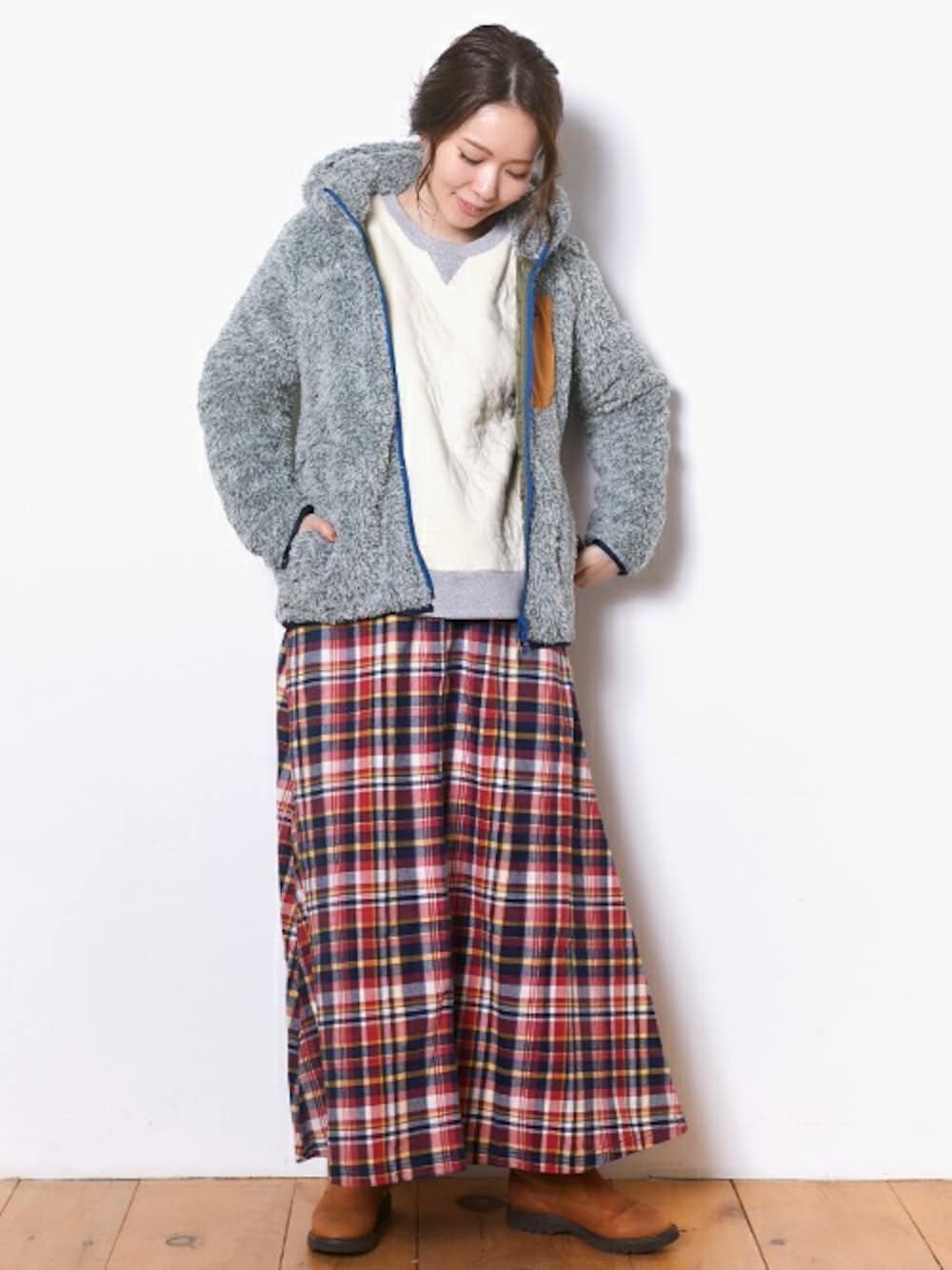 今季も大人気のシャギーボアジャケットを使った、暖かコーデにしてみました♪ 流行りのアイテムを1点投入するだけで、一気に今年らしいコーデになります^^