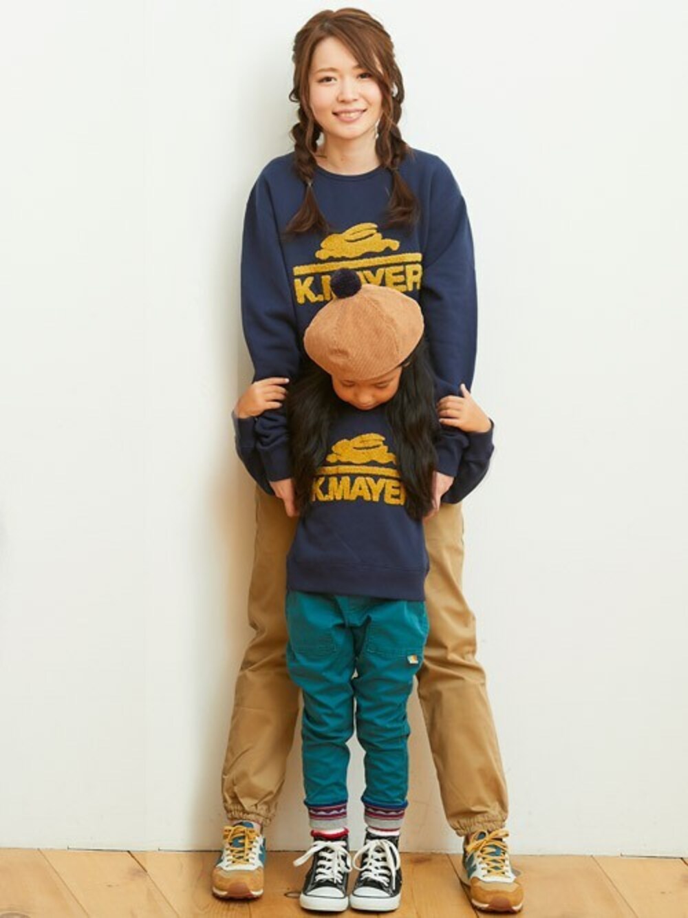 スウェット×ジョガーパンツでおそろ~♪ ロゴ部分はもこもこのサガラ刺繍!