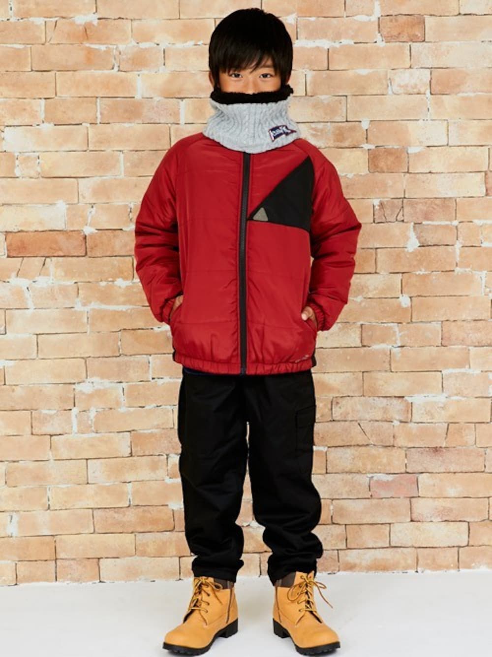 KRIFF MAYERのその他アウター「▼サンカクジャケット アウター 中綿 防寒 キッズ ジュニア 男の子 (120cm 130cm 140cm 150cm 160cm)」を使ったコーディネート