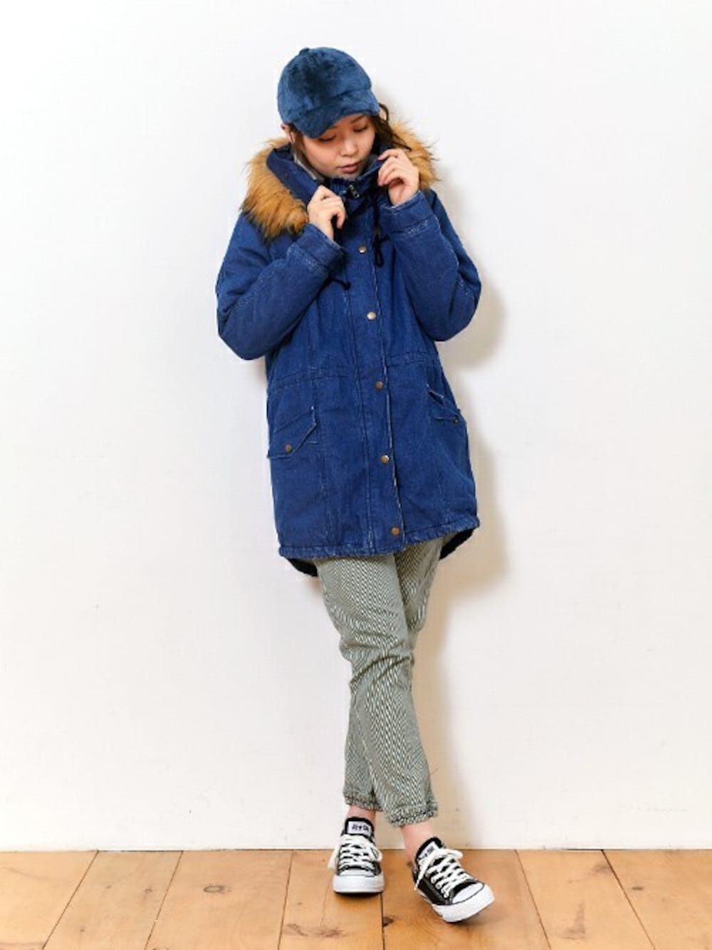 内側がもこもこボアのモッズコートは、着る毛布のような安心感◎ こなれた加工が効いたデニコートでコーデをワンランク格上げ♪