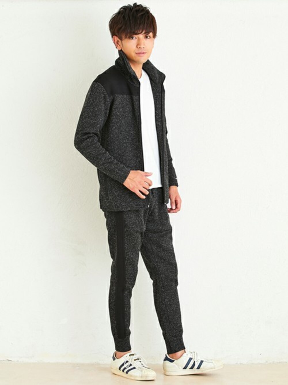 暖かくフワッと柔らかな裏起毛が心地良い、ジャージトップとジョガーパンツのセットアップ『ラクチー』です! 休日スタイルをより快適に過ごすルームウェアとしておすすめのアイテムです!