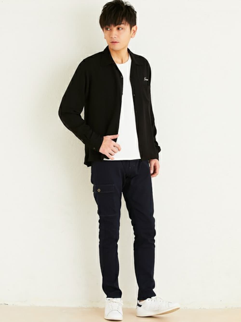 今季人気アイテムのオープンカラーシャツです。 涼感のある生地で着心地快適です! ボトムスは季節問わずはきまわせるスリムカーゴパンツ。 様々なシーンに合わせやすいオススメアイテムです!