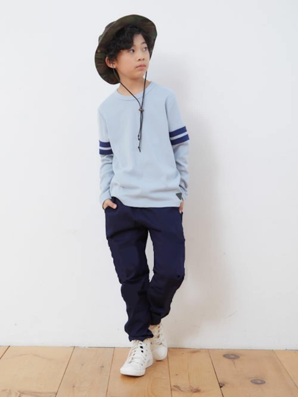 爽やかカラーの春コーデ☆ シンプルなトップス、ボトムスに、カモフラ柄のハットをアクセントにプラスしました!