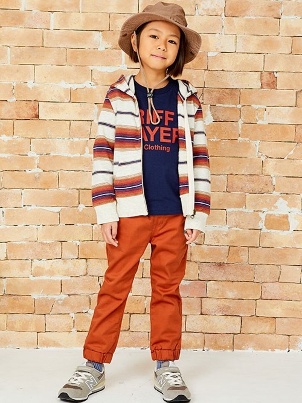 雨の日は肌寒いので、さらさらで柔らかなパーカーが◎ フロントファスナーで着脱も簡単! オレンジよりのレッドを基調に、ネイビーで引き締めるカラーコーディネートです♪