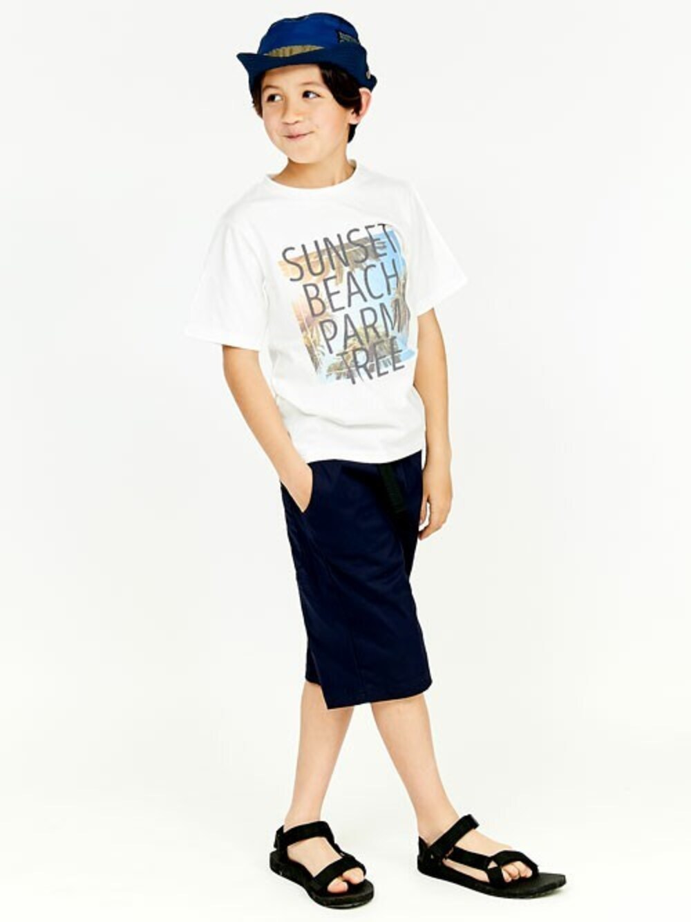 フォトジェニックな常夏の風景プリントTシャツで写真栄え!? 帽子で日差し対策も忘れないで♪ 涼しげ夏のコーデ、完成です★