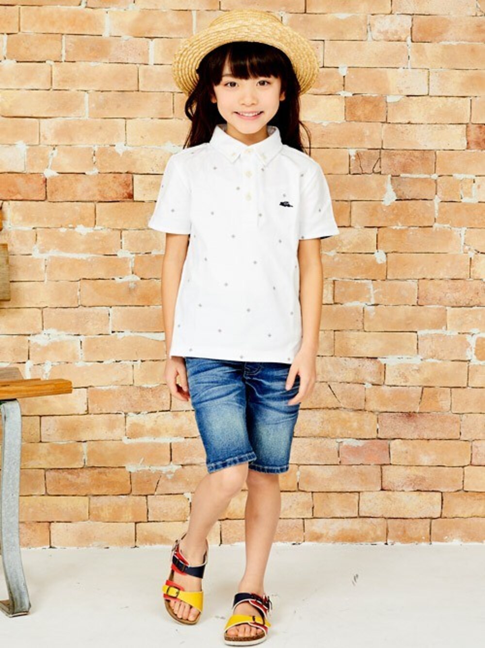 夏の爽やかポロシャツスタイル♪ ライトオンスデニムと白ポロの相性が抜群です! ポロシャツには小紋柄を配して、ちょっと遊び心をプラス。 頭には、カンカンをかぶって、夏の鉄板コーディネートの完成♪