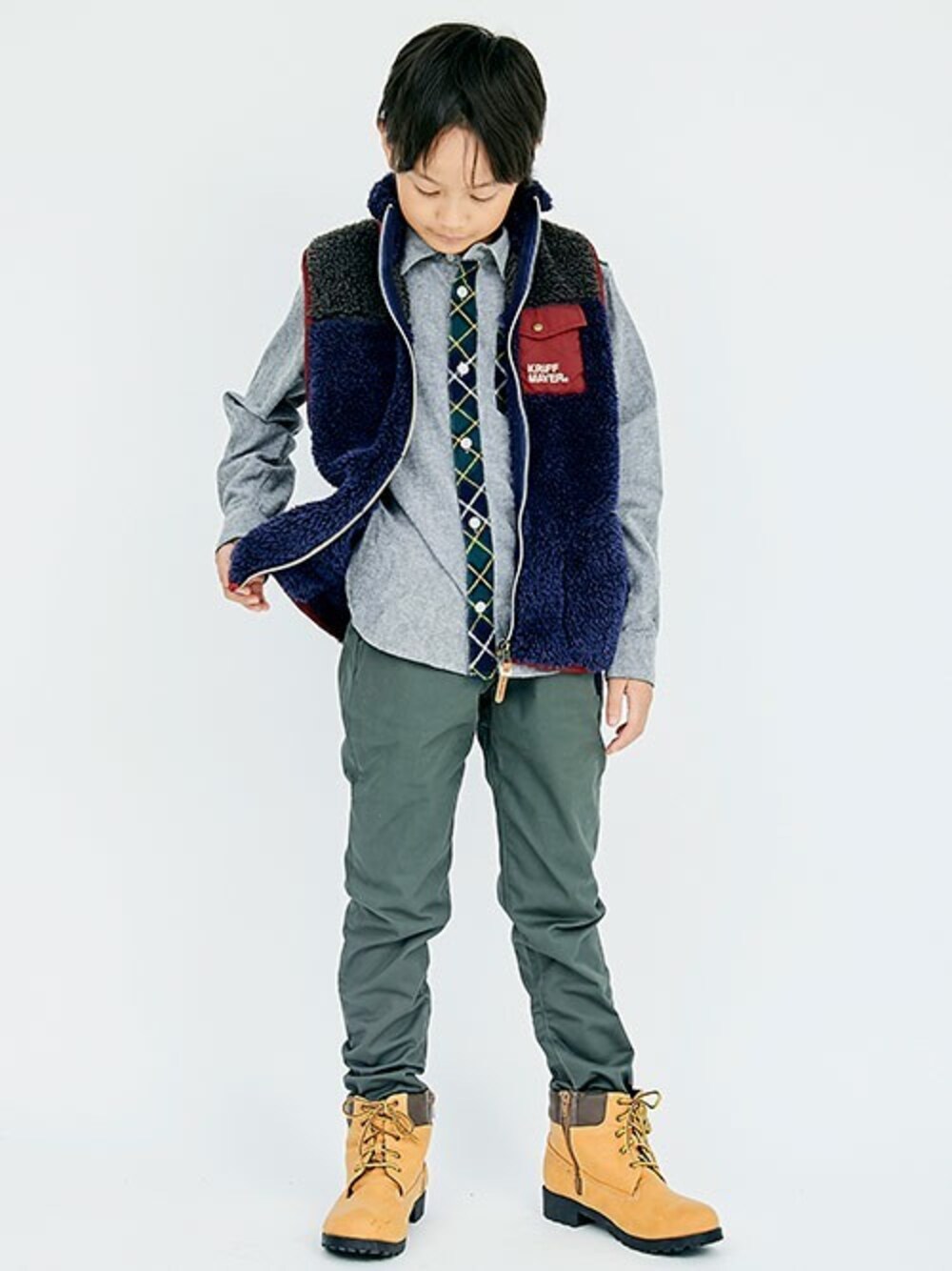 KRIFF MAYERのベスト「シャギーボアフリースベスト」を使ったコーディネート