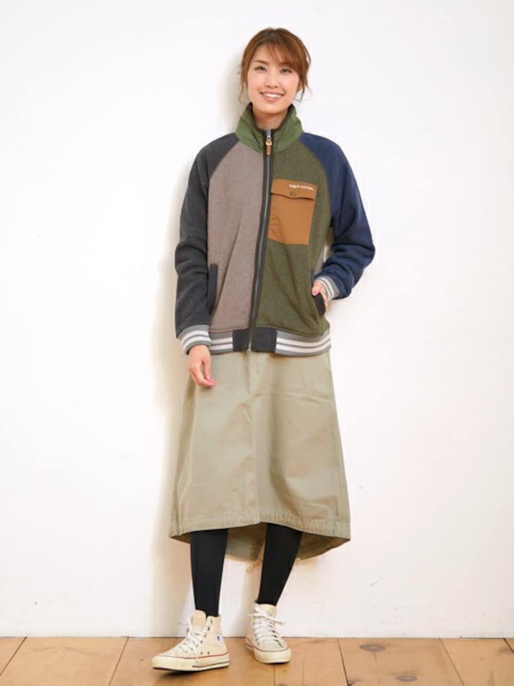 カラフルな配色がポイントのブルゾンを主役にしたカジュアルコーデです^^ 異素材で切り替えたポケットや、ネック部分がアウトドアライクなデザインです◎ 裏起毛+スタンドネックなので、朝晩冷え込むこの時期にぴったりの軽アウターです。