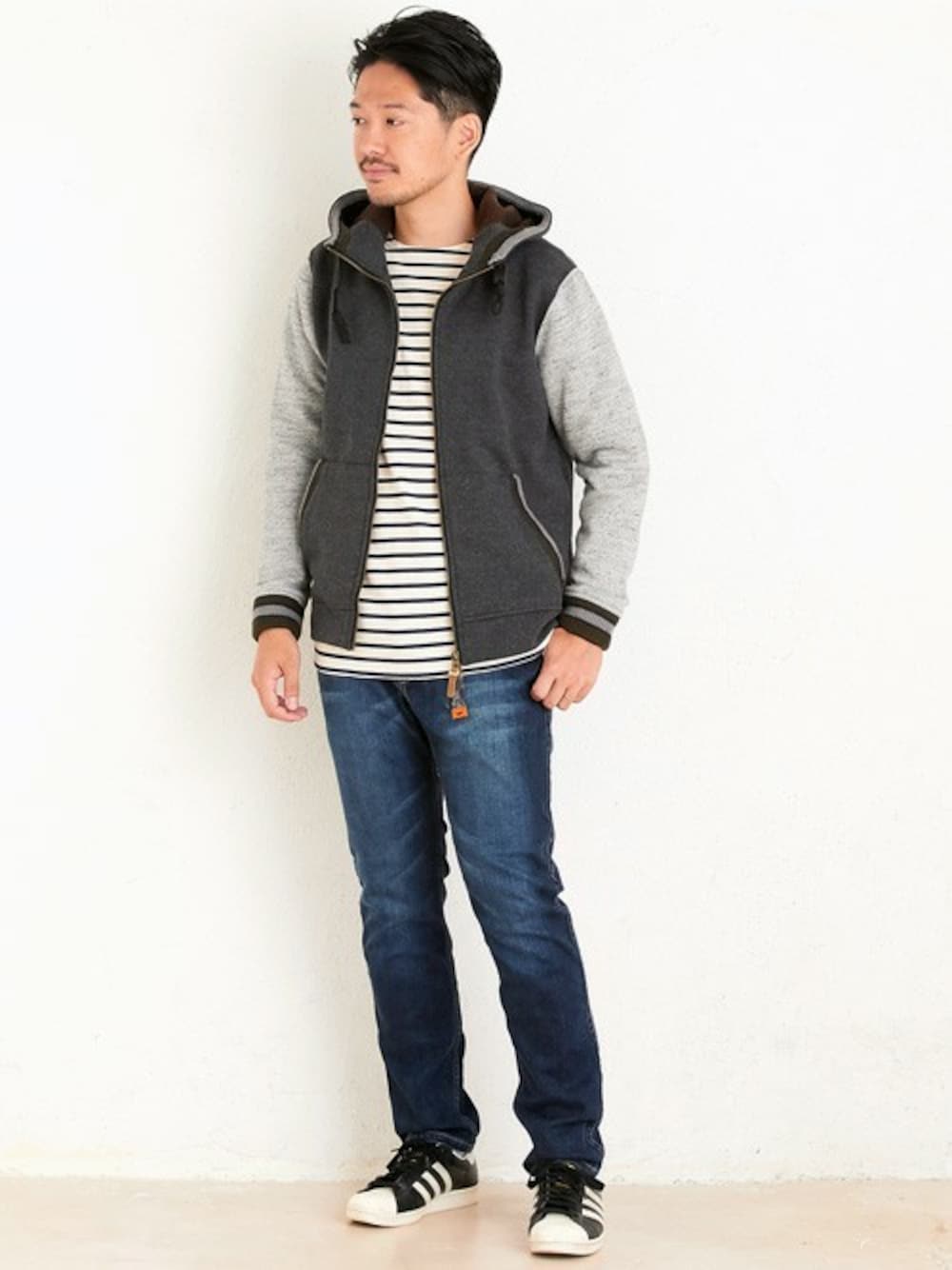 暖かくて柔らかい裏起毛カットツイードに編みリブを使い、表情豊かに仕上げたパーカーがオススメです! ロンTやスウェットなどのカットソーと合わせて気軽にカジュアルコーデが楽しめるアイテムです。 ボトムスはオールシーズン活躍するデニムクライミングパンツです!