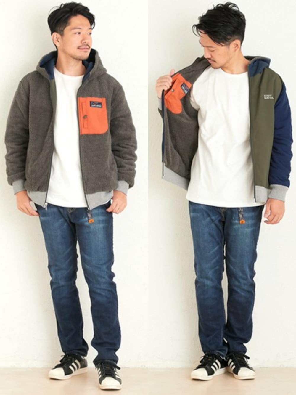 コーデに合わせてリバーシブルできるフードパーカーです! ボアフリース面を裏側にすれば高い保温性を発揮! 表側にすれば胸ポケット切替がアクセントになったアウトドアライクなデザインで着まわせますよ!
