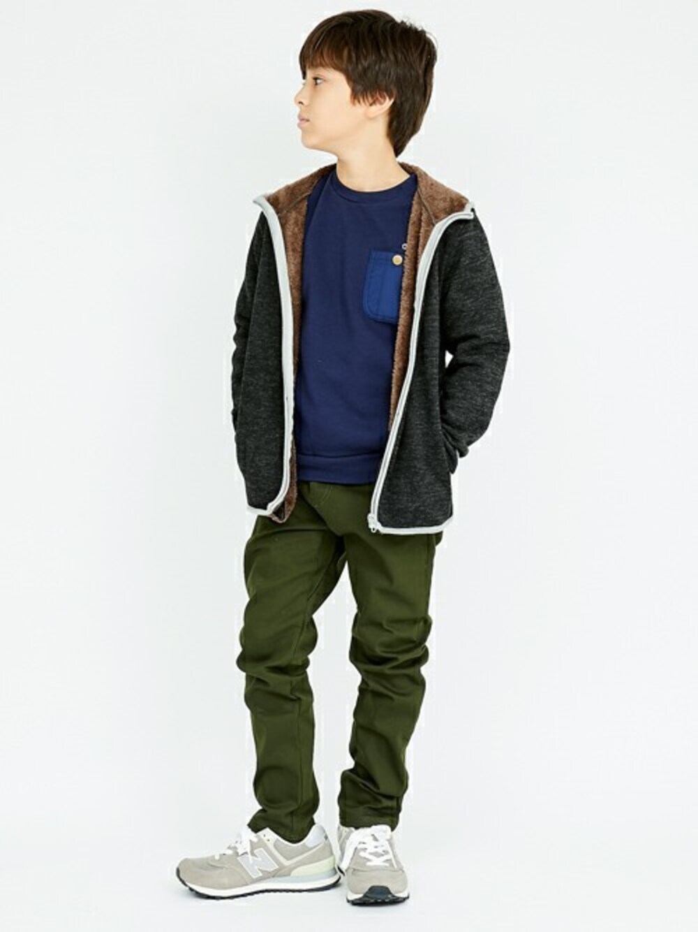杢調の風合いある表面と、シャギーボアの暖かな裏面が、 おしゃれで着心地の良いパーカーです! インナーのネイビーのスウェットで爽やかな印象に◎