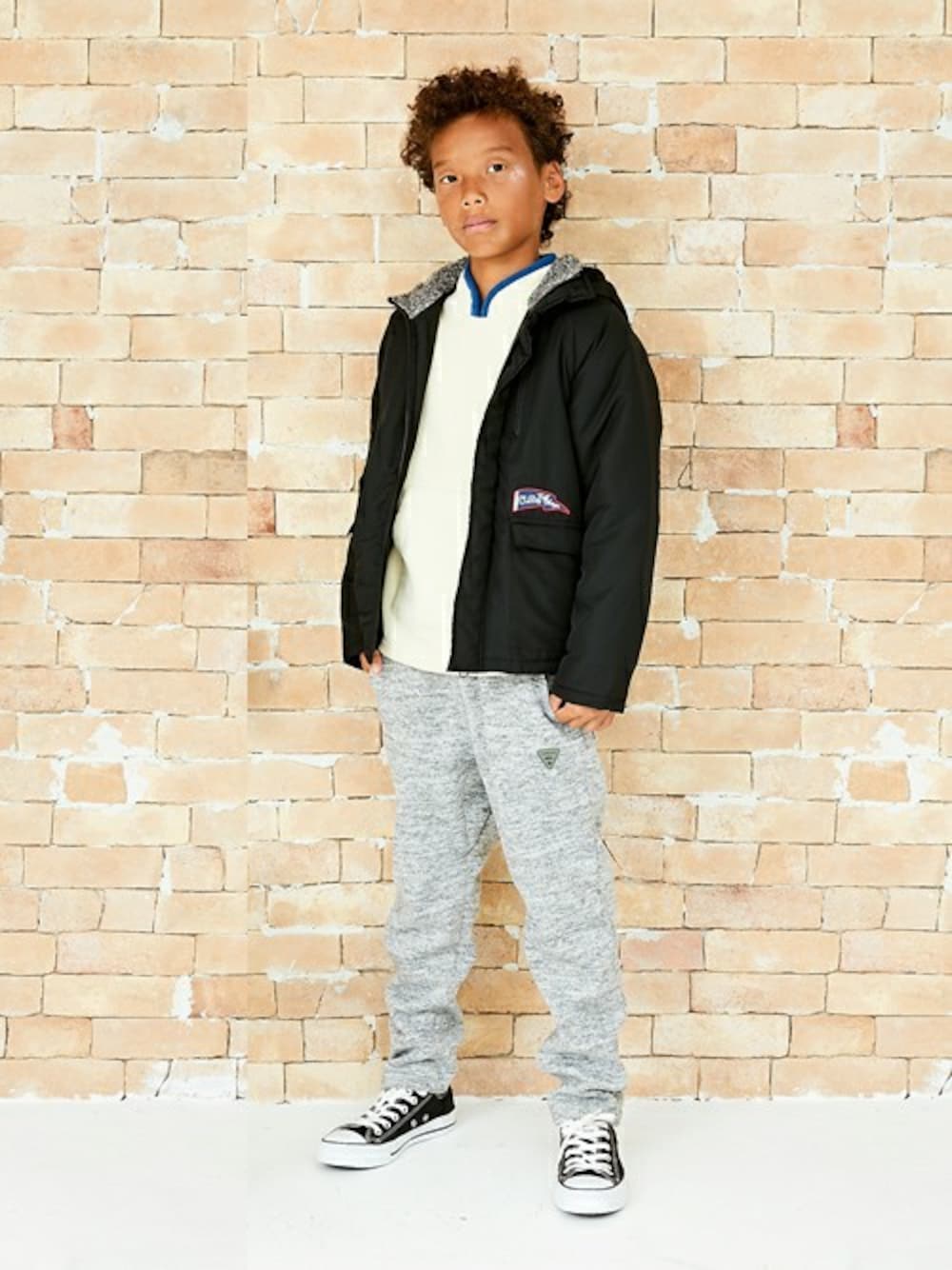 中綿ジャケットであたたか動きやすいコーディネート◎ グレーのスウェットボトムスが今っぽい、 高学年のお兄ちゃんにもオススメアイテムです♪