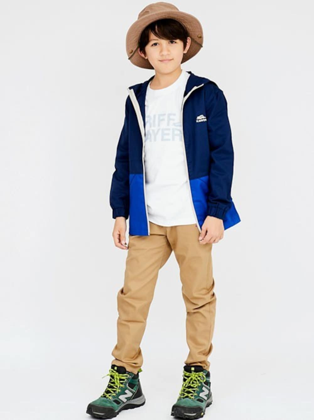 シャカシャカしない、コットンマウンテンパーカー! 撥水加工で防汚効果も高く、KIDSの春ジャケットに最適なアイテム。 ロゴロンTと合わせてシンプルおしゃれな春スタイル♪