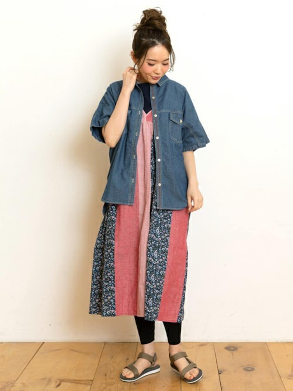 切替えたっぷりのダブルガーゼのワンピースは、シンプルなTシャツに合わせるだけでコーデを完成させてくれる便利アイテム! 半袖シャツを合わせると、涼しさはそのままに、お洒落感も出るのでオススメです◎