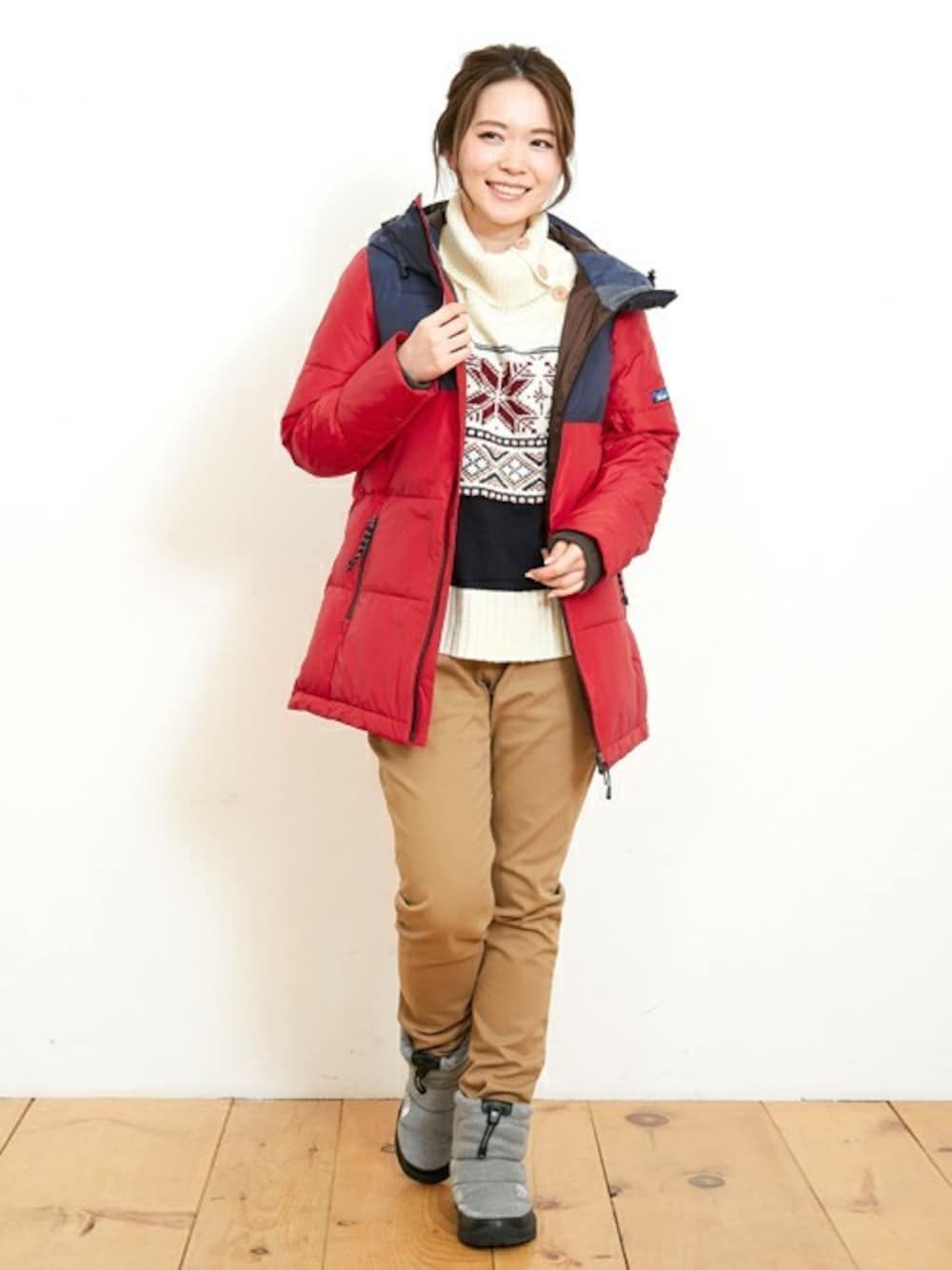 皆様クリスマスはいかがお過ごしでしょうか^^ 寒くなってきて、ダウンを着る方も多いのでは? レッドのダウンをメインにあったかクリスマスコーデにしてみました♪ ノルディック柄のニットやダウンなど、寒い季節だからこそのアイテムを楽しみたいですね**