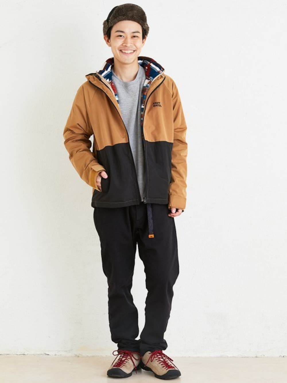 マウンテンパーカーとフリースジャケットが一緒になった、3WAYマンパを使ったアウトドアライクなスタイルです。 取り外しもできるので秋~春まで着まわせます! ボトムスはオールシーズン活躍する人気定番のクライミングパンツです。