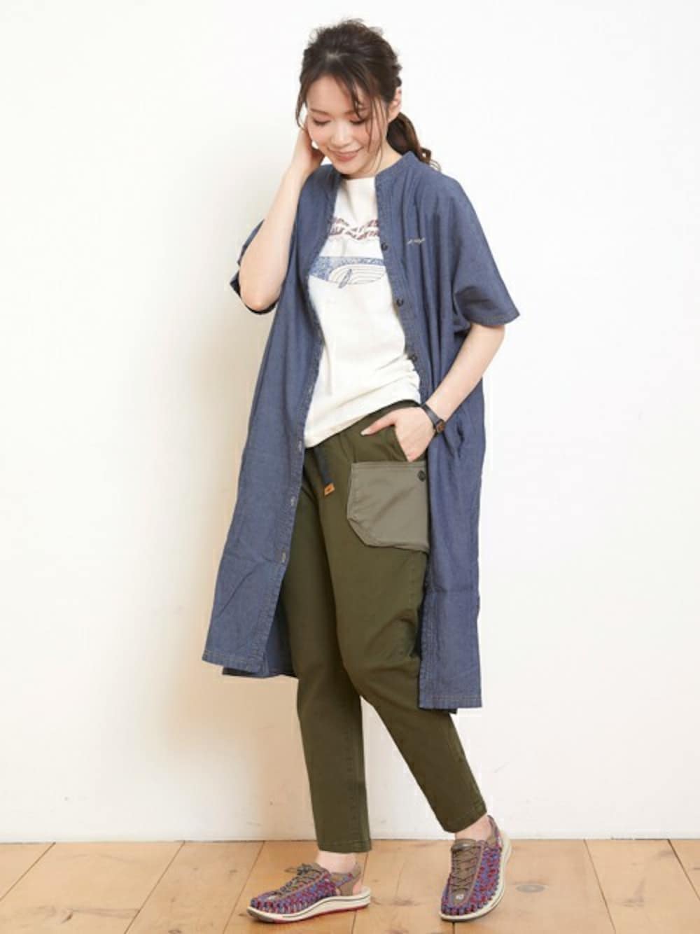 KRIFF MAYERのシャツワンピース「総柄シャンブレードルマンワンピ」を使ったコーディネート