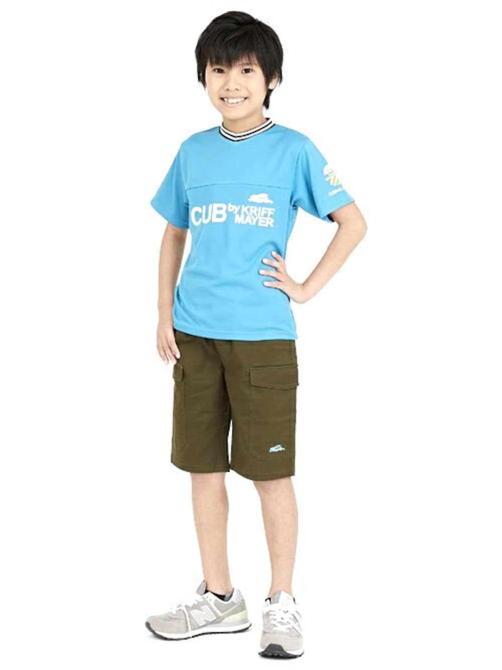 真夏日が続いたり、ようやく夏がやってきましたね! スポーツや外遊びにぴったりの速乾メッシュ生地Tシャツ♪ 暑い時期でもさらっと快適に過ごせます◎ カーゴショーツを合わせて、夏休みをイメージしたコーデにしてみました^^