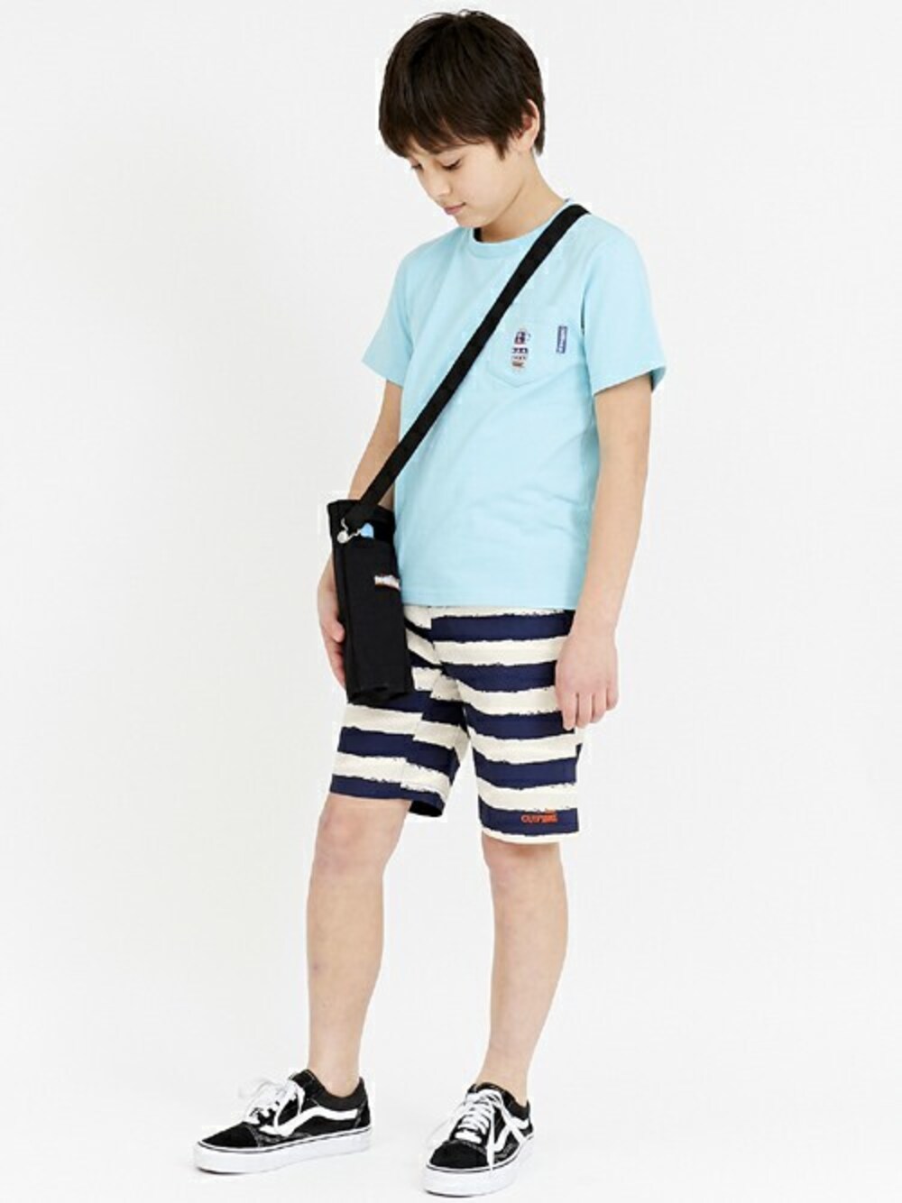 暑い日が続いてますね。。 爽やかカラーTシャツとボーダーのショートパンツで夏らしさ満点コーデ♪ 水分補給に便利なドリンクホルダーはコーデのアクセントにも◎