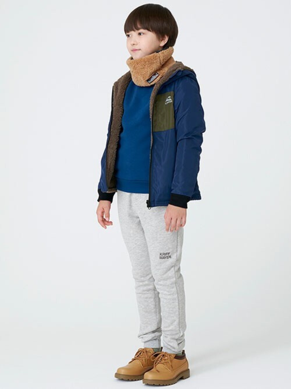 リバーシブルのジャケットとネックウォーマーが、コーディネートの幅を格段にアップ! モコモコのボアフリースが冬のほっこりコーデにぴったり♪
