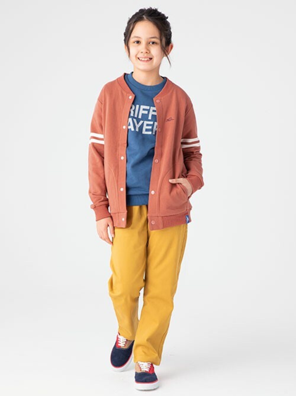 柔らくてストレスフリーな、カーディガン型スウェットジャケット。 習い事の発表会や、小学校の卒業式などの、ちょっと改まった席でも活躍! カジュアルに着こなしてもサマになるところが◎