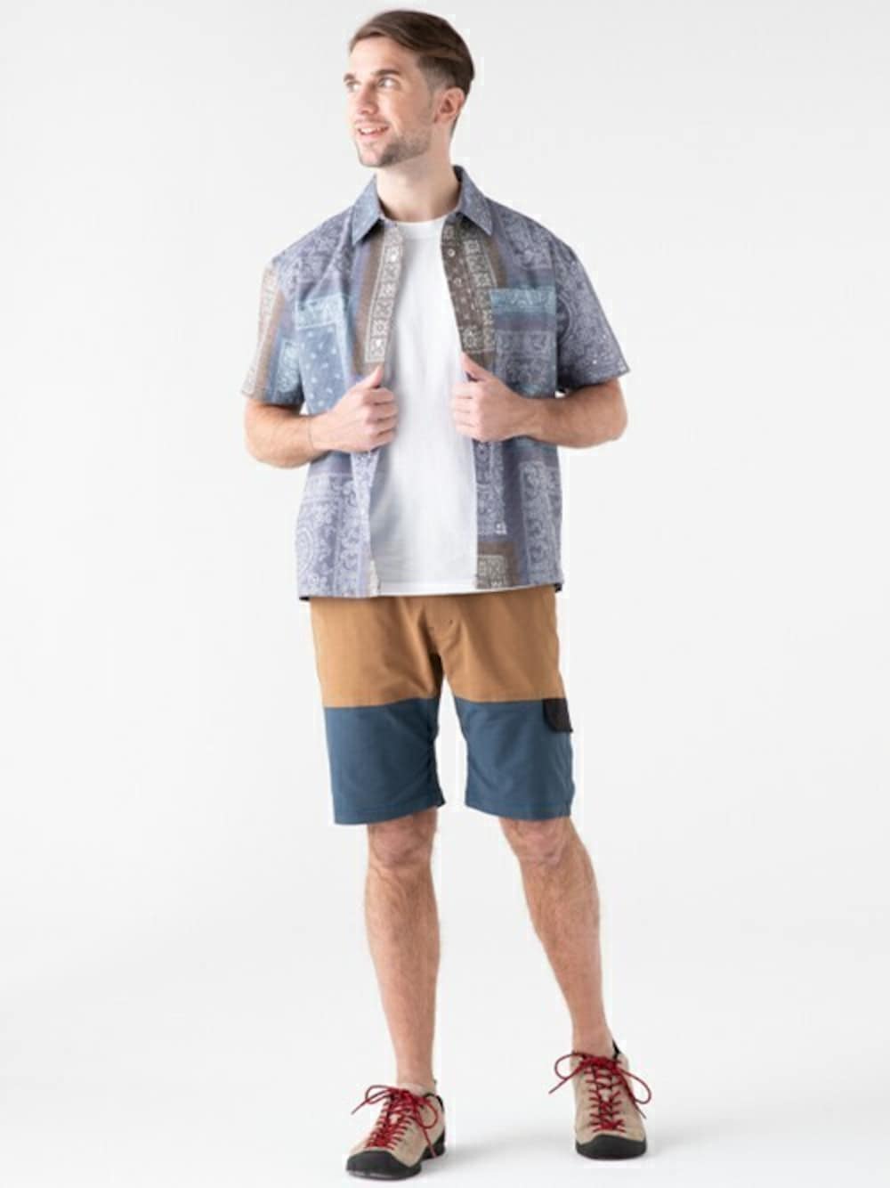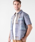 キャンプや夏フェス等のアクティブなシーンに映えるオリジナルの総柄をプリントし、ドライタッチな肌触りで着まわせる半袖シャツです。 目の細かいメッシュ調の表情を持ち、肌に触れる面積が少なく、通気性にも優れているので、快適な着心地が長続きします。 フロントは開け閉めが簡単にできるスナップボタン仕様。 襟元のボタン位置は敢えて間隔を少し狭くし、襟の開き方を絶妙に調節できるデザインとなっています。 スタイリングによってはオープンカラーシャツのような着こなしも可能です。