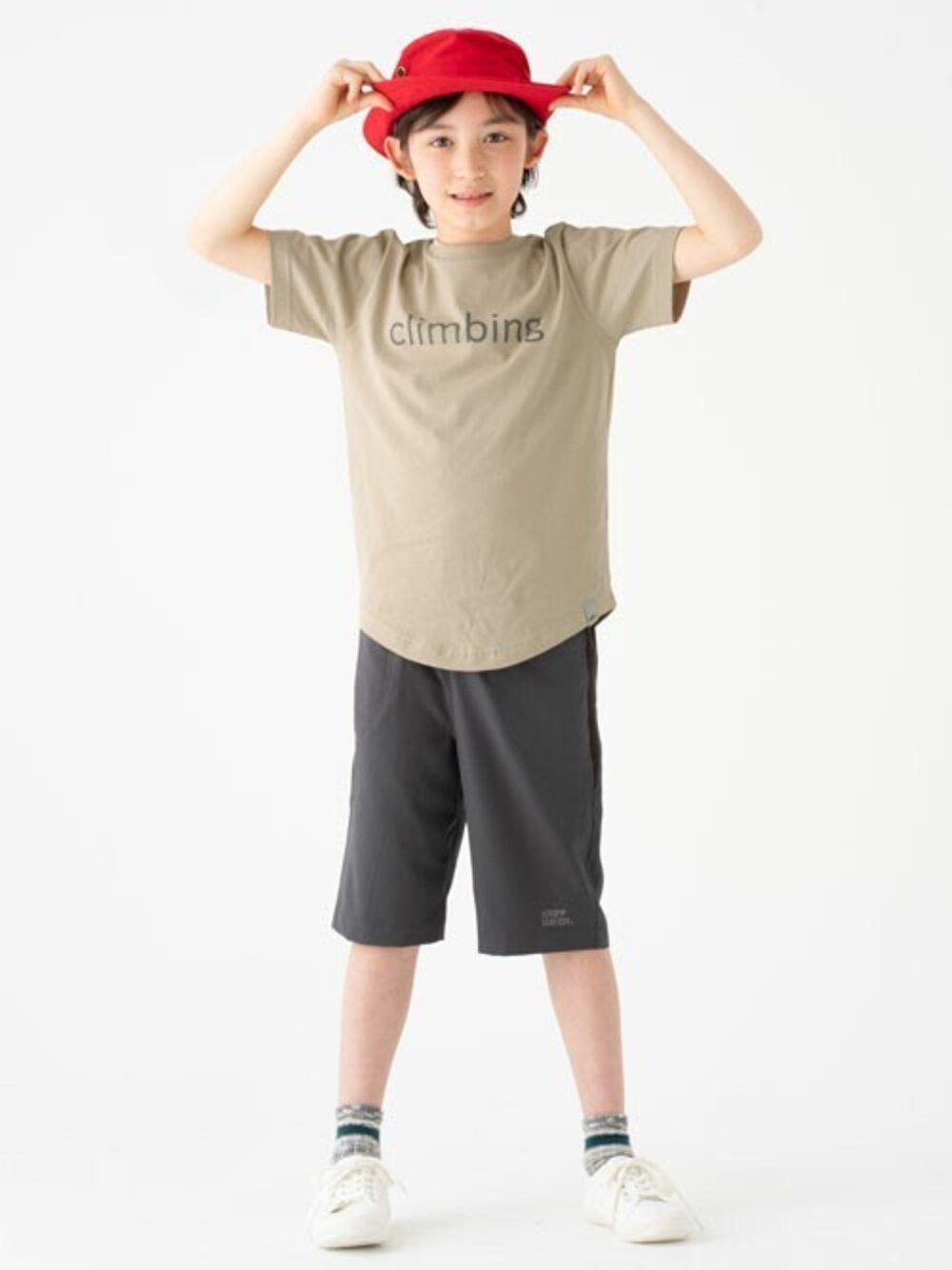夏だけど落ち着いた雰囲気にしたい時もありますよね! トップスはシンプルなロゴプリントで着回しやすさ抜群の1枚! 前後の裾がラウンドしているので、ゆったりお洒落に着こなせます。 天然素材で肌にやさしく、よりしっとりとした肌触りになっています♪ ボトムスはポリエステル素材なので、さらっとしていて乾きやすく ほぼ重さを感じない程の驚きの軽さ♪ ストレッチも効いており、まさに夏のアクティブキッズにぴったりの快適パンツです! 後は、赤の帽子でアクセント!一気に雰囲気が明るくなります♪