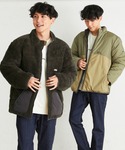 表面はふわふわな起毛感が特徴のシャギーボアフリース、裏側はナイロンのような艶感のある化繊を使ったリバーシブルスタンドネックアウターです。 ボアフリース面を裏側にすれば高い保温性を発揮します。 スタイリングに合わせて2WAYで着まわせます。 中綿が入っているにも関わらず、見た目に反してとても軽いのが嬉しいポイント。 どうしても秋冬シーズンのアウターは重くなりがちですが、こちらは付属のファスナー等も軽量の物を使用しており、重ね着しても疲れにくく気軽に羽織れるようデザインされています。