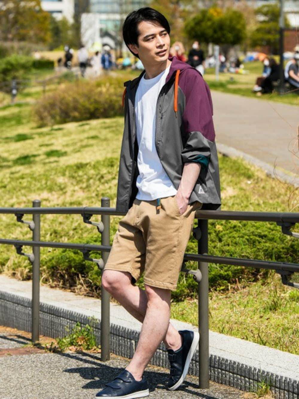 KRIFF MAYERのナイロンジャケット「さらさらエアーフードJK」を使ったコーディネート