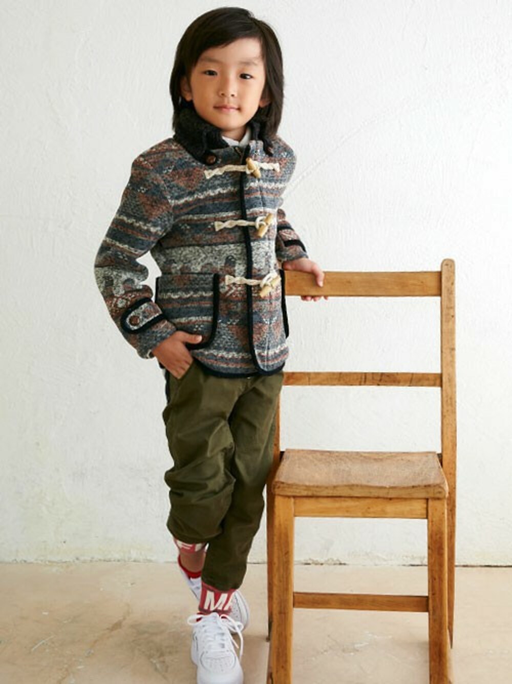 カジュアルなシーンでも、ちょっとキチンとした場面でも活躍する、ダッフルコート。 裾リブがREDになっているパンツを合わせて、ワンポイントアクセントを入れてみました♪