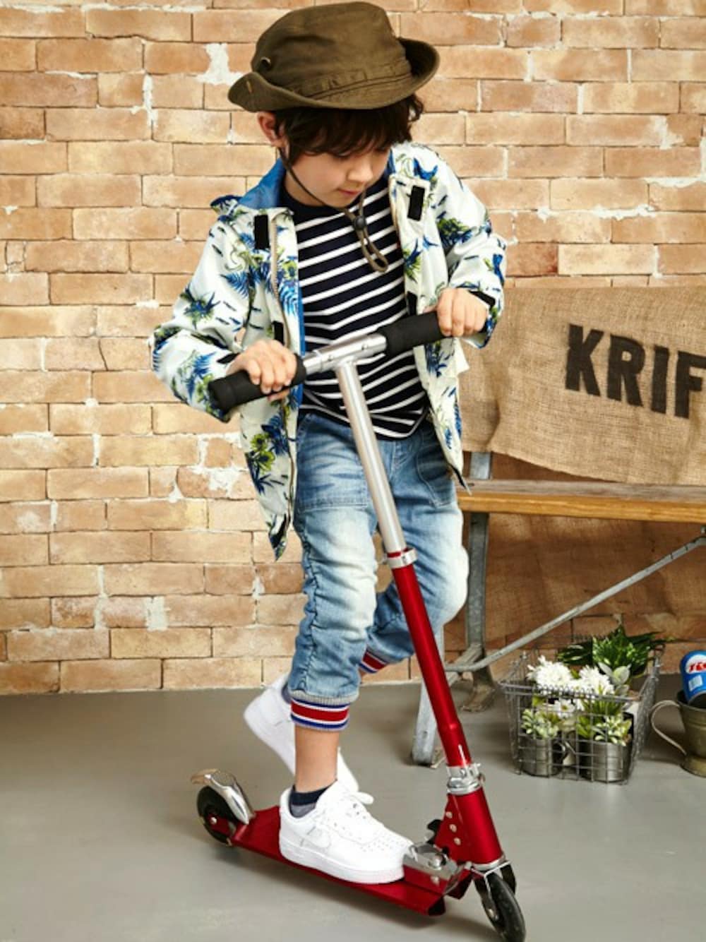 KRIFF MAYERのマウンテンパーカー「レイクアロハ総柄マウンテンパーカー【90cm-130cm】(しゃかしゃかジャケット)」を使ったコーディネート