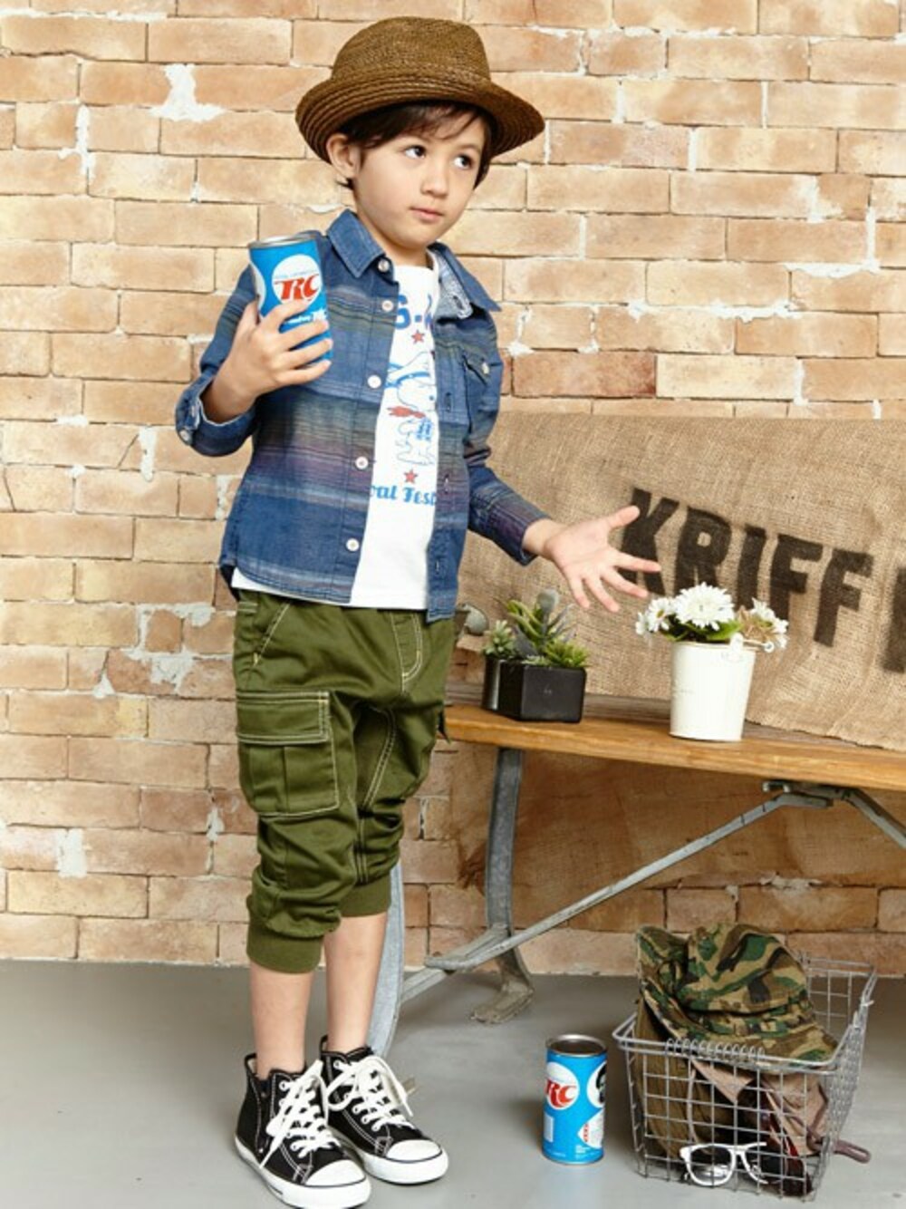 オリジナル総柄の綿麻シャツを、サラッとこなして、子供を可愛く♪ 羽織としても使えるシャツは、おしゃれなキッズには必須 !