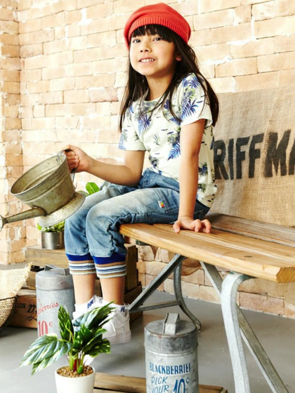 ボタニカル柄がカワイイ! 夏のお出かけスタイルです♪ ベレー帽でコーデにアクセントをプラスしました!