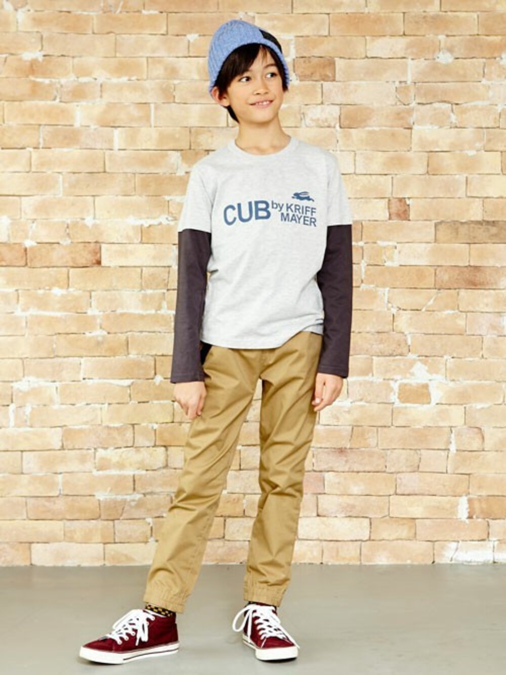 これからの季節にピッタリな、軽めのコーデ♪ フェイクレイヤードのTシャツは、オシャレで着まわしもバツグン◎ ニット帽も、コーデのポイントです!