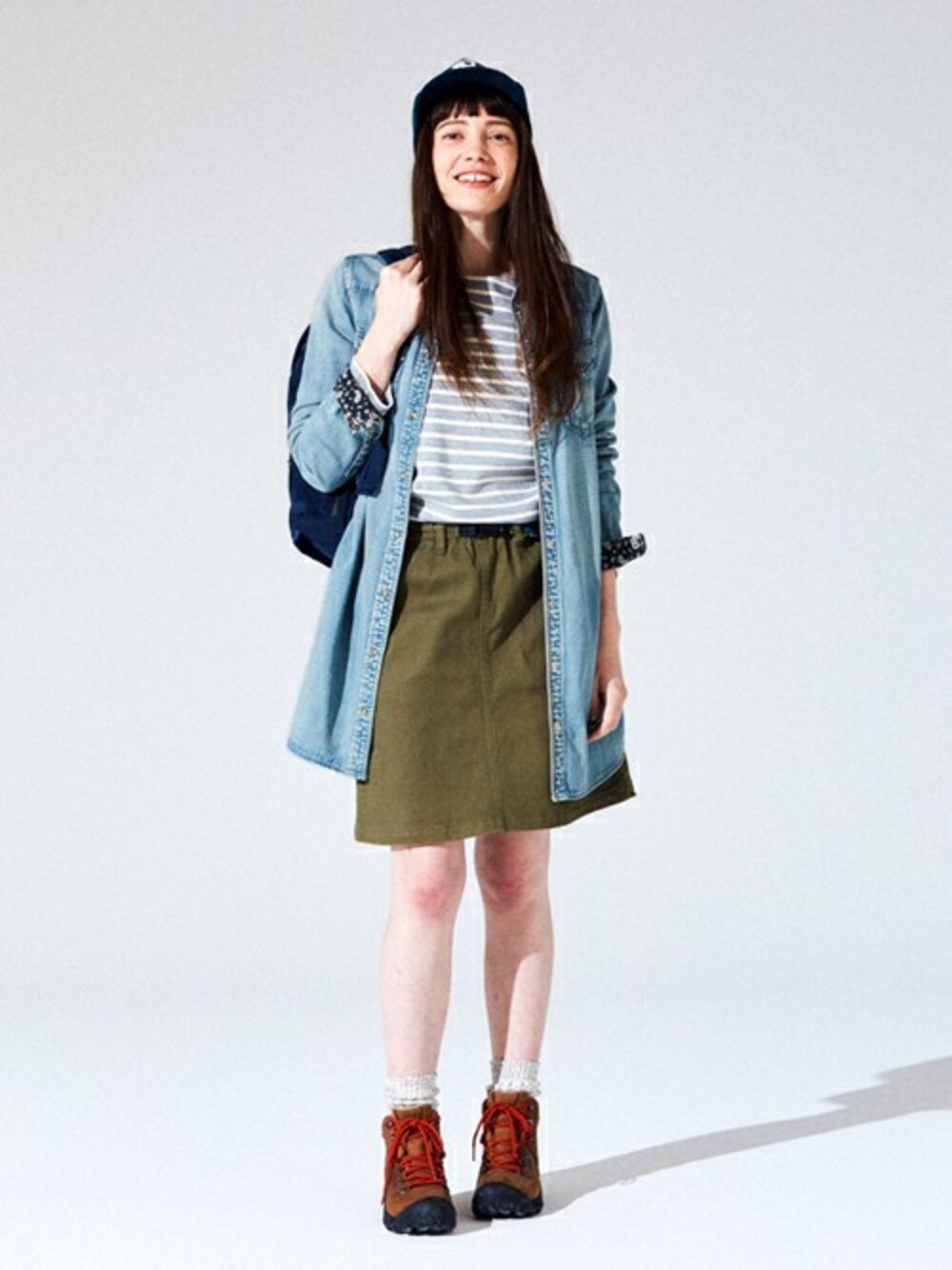 ゴールデンウィーク直前ですね! アクティブなお出かけをご予定の方にはぴったり?!な、カジュアルアウトドアコーデにしてみました♪ 柔らかくて着心地の良いミラノリブのボーダーロンTとクライミングスカートを合わせて動きやすさ◎ スカートにトレッキングシューズと靴下を合わせれば、足を出してもヘルシーにまとまります!
