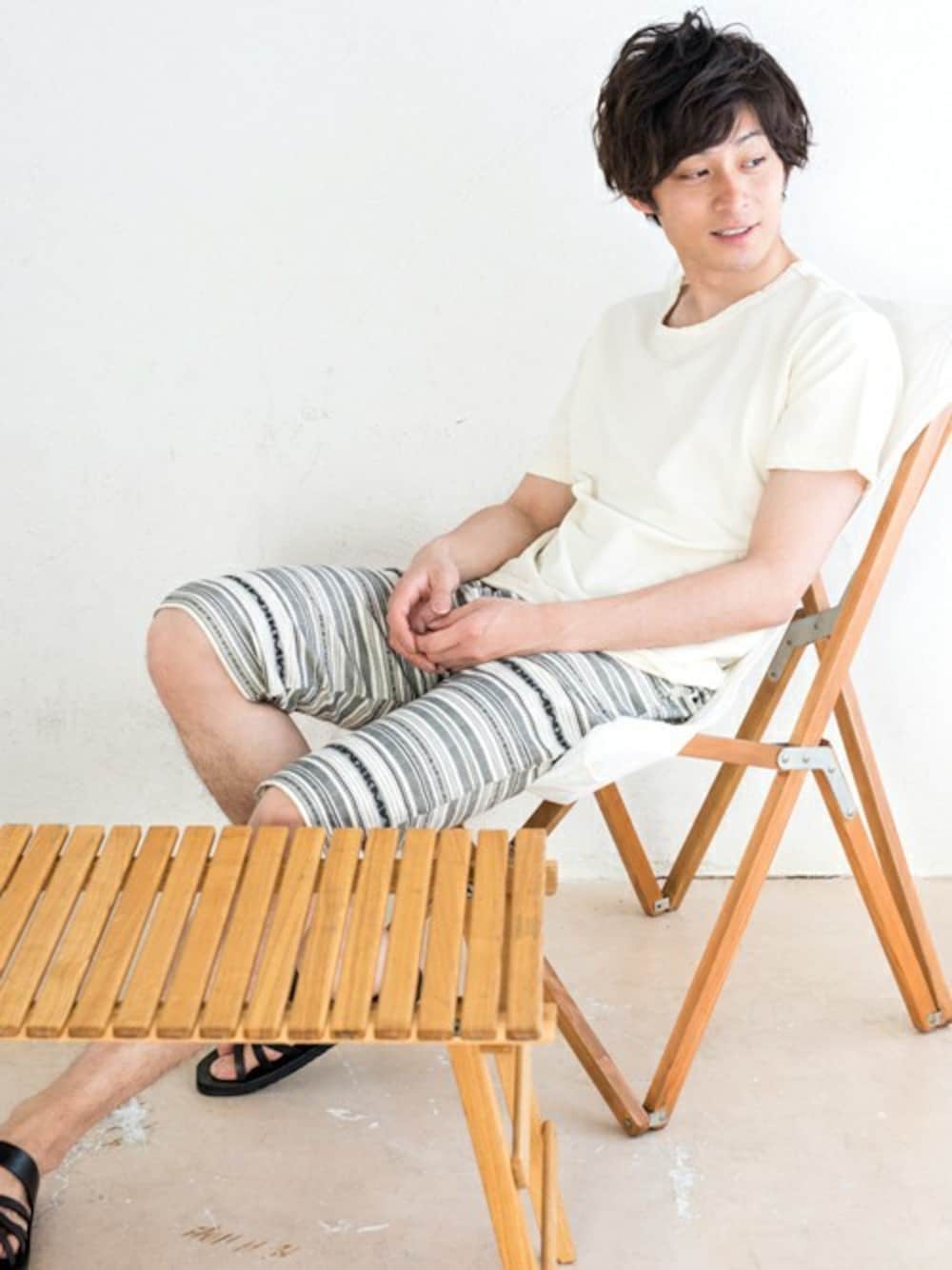 KRIFF MAYERが提案する新しいリラクシングスタイル「ラクチー」のクルーネックT+クロップドパンツのセットアップです! ルームウェアや休日スタイルにはもちろん、アウトドアやちょっとコンビニへ行くときにもオススメです♪