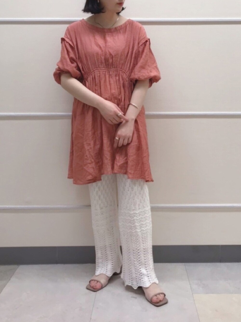 kanaのシャツ/ブラウス「ボリューム袖シアーギャザーチュニック/透けブラウス」を使ったコーディネート