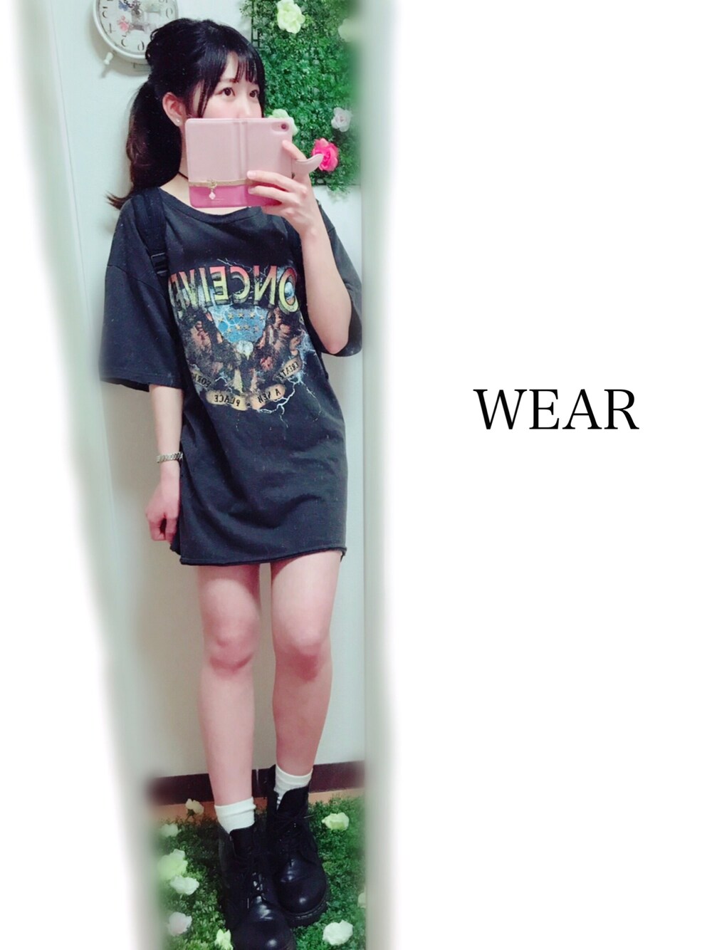 WEGOで一目惚れしたTシャツをワンピ風に着てみました😎 メンズのMサイズ👔 もちろん中にはショーパン履いてます🙃