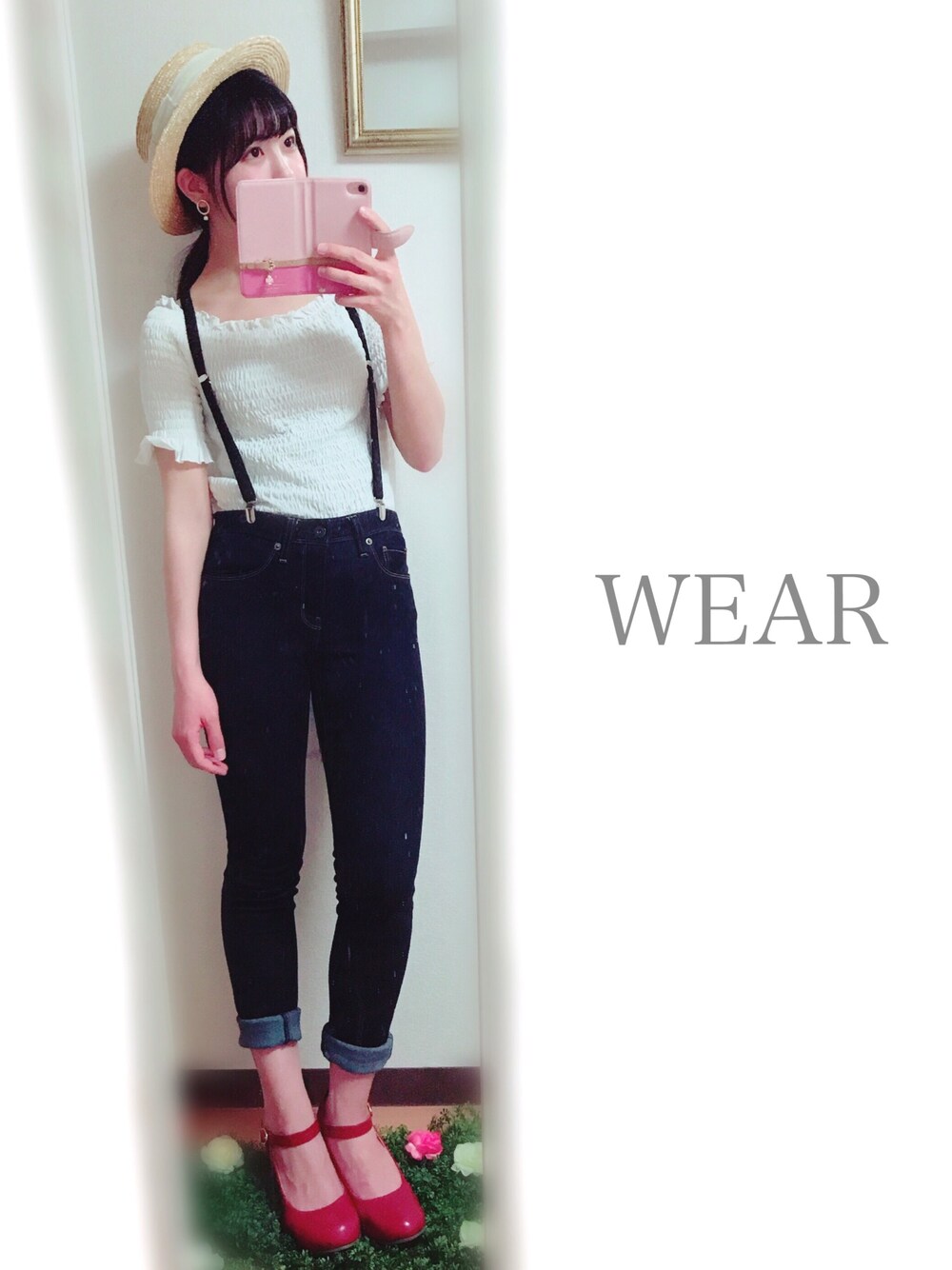 カンカン帽ちゃんコーデ👒 赤パンプスを差し色にしました(*´ω`*) …サンダルほしい。笑 シンプルカジュアルな感じかな🐳