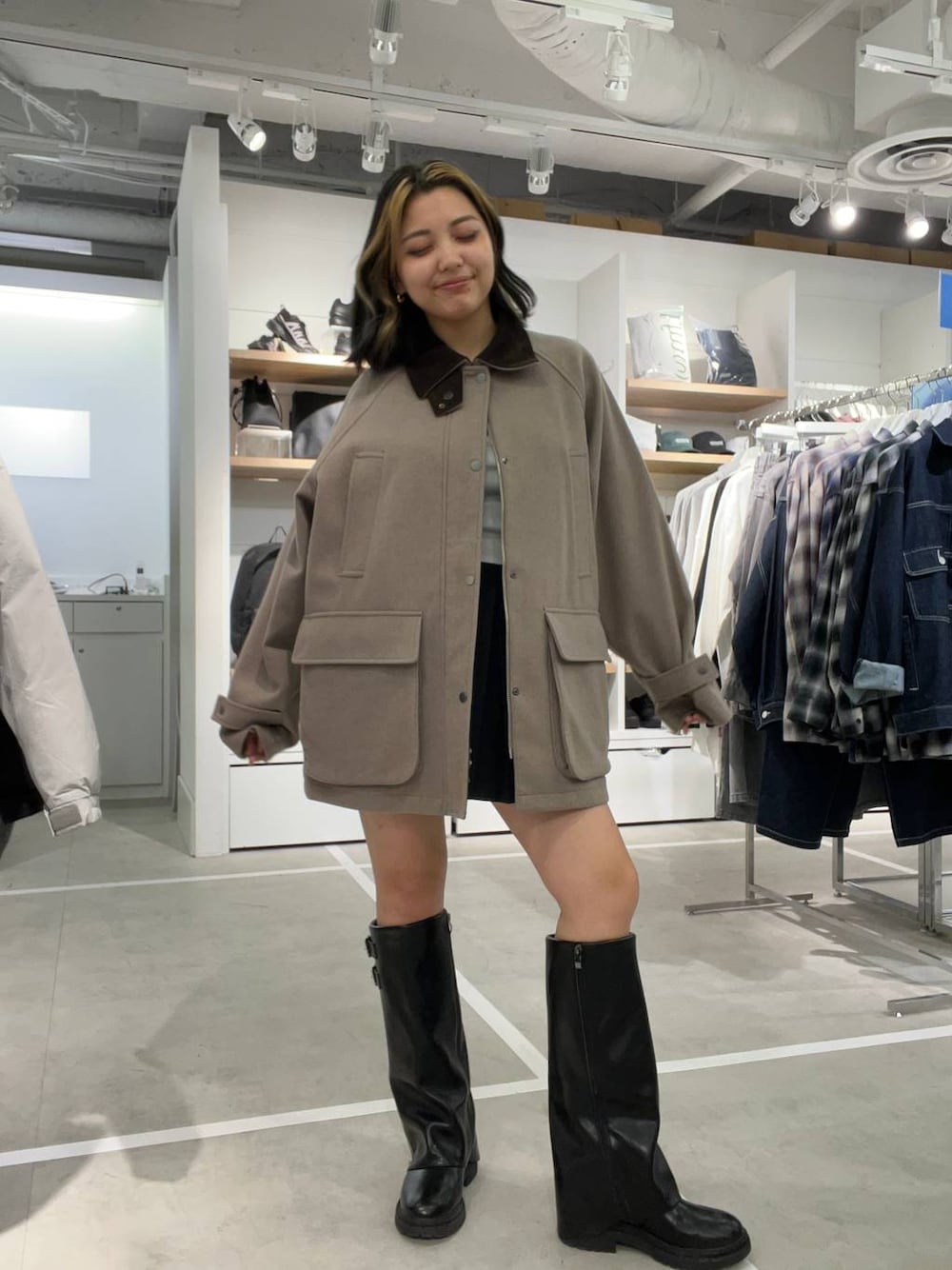 1枚できまるハンティングブルゾン🫶🏽 裏地あるから中に着込んでも問題ないです‼️ ロングブーツと合わせても可愛い丈! 襟立ててきても雰囲気変わって可愛いです🙆💕 ポケット大きいのも高ポイント😭✨✨