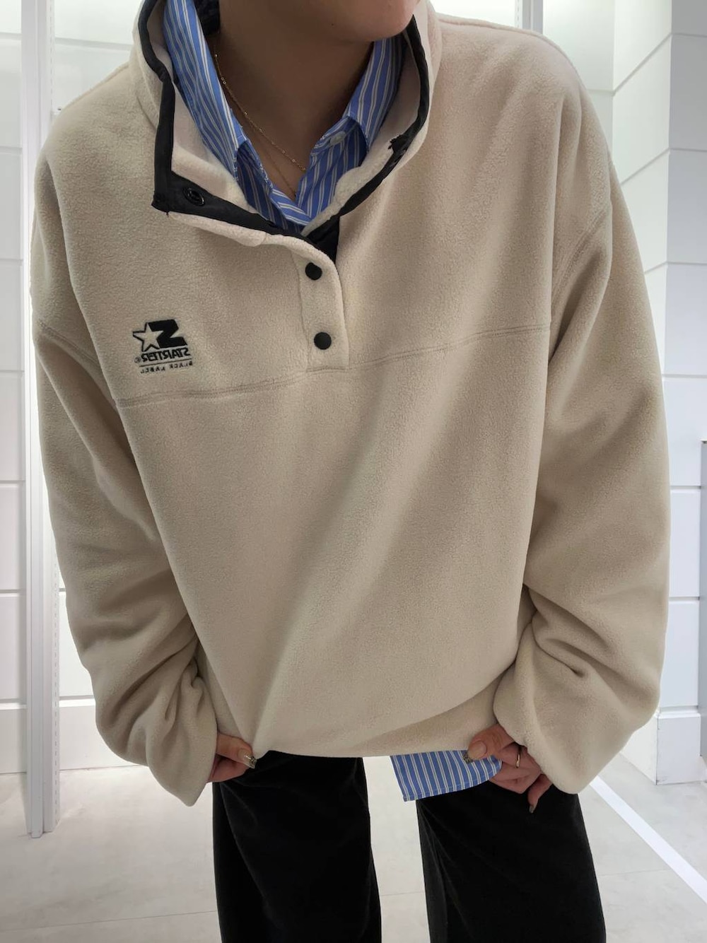 シャツはシワになりにくいのと今の時期からはインナーで雰囲気も変えられるので一枚持っておくのがおすすめ 春夏も一枚で使っていただけたり羽織にもできます◎ フリースも生地が厚すぎず着膨れしにくいのと袖が長めで絞られているのであったかい🥵 首しめてもかわいいです!💕🫦 パンツは肌触りが良く素材感も秋冬にぴったり^^ ウールライクで程よい厚みのある生地が特徴です🫶🏽