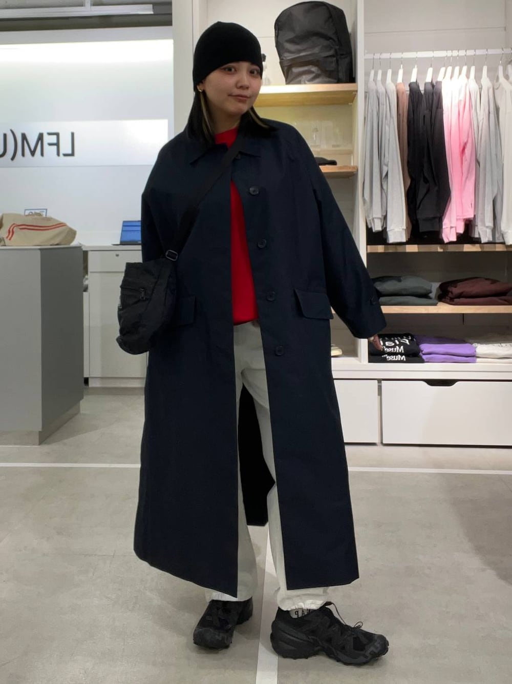 ネイビーコート🧥🫐✨ サイドとバックにスリットが入っているので体のシルエット綺麗に見えます!🥺 とっても軽いのでストレスフリーに着ていただけます✨