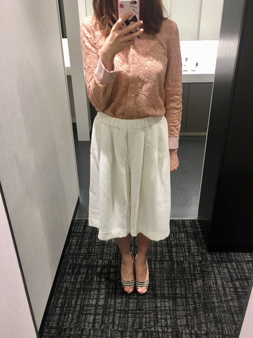 ある日の通勤コーディネート❁ JILLSTUARTのレースブラウスに、ガウチョパンツを合わせました🥺💕 レースブラウスは、後ろがリボンになっていて、色違いで持っている程お気に入り😂🎀