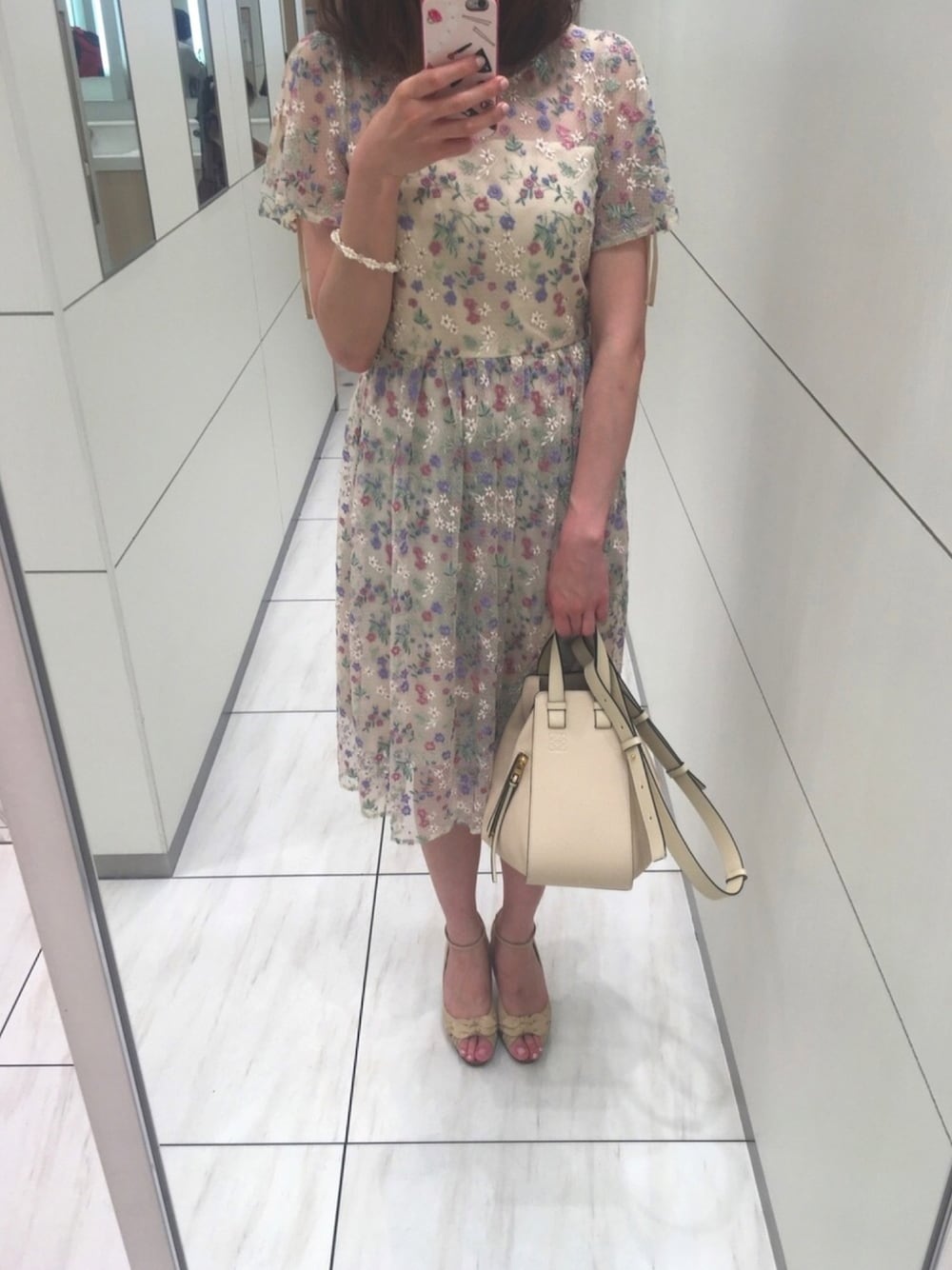 休日のお出掛けコーディネート💗 JILLSTUARTの花柄ワンピースを着ました🌼💕 お花が刺繍されていて、とってもお気に入りのワンピース👗✨