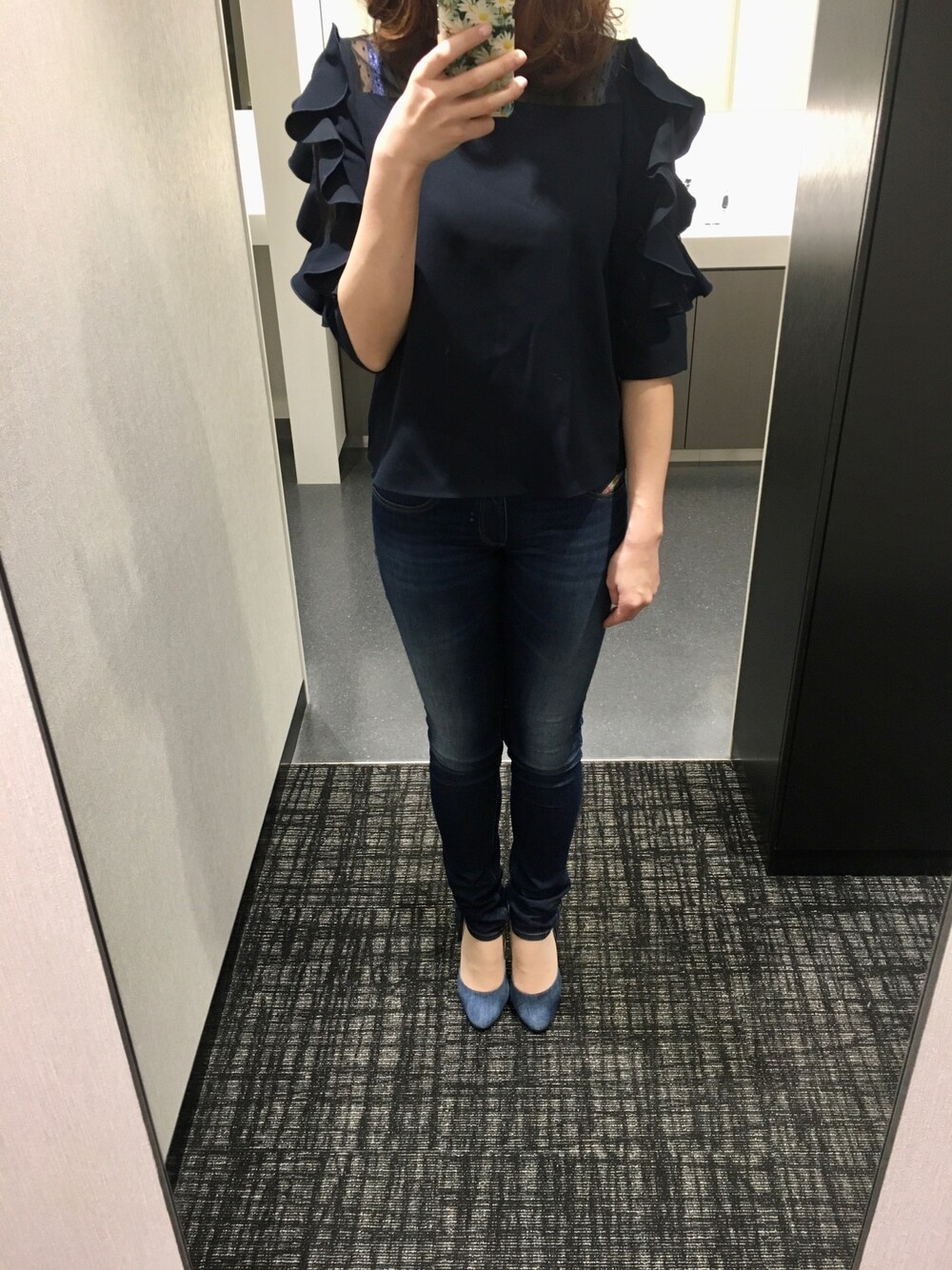 ある日の通勤コーディネート☆ Aveniretoileのブラウスに、DIESELのデニムを合わせました🧸💕 内勤の日なので、カジュアルコーデにしました🎶