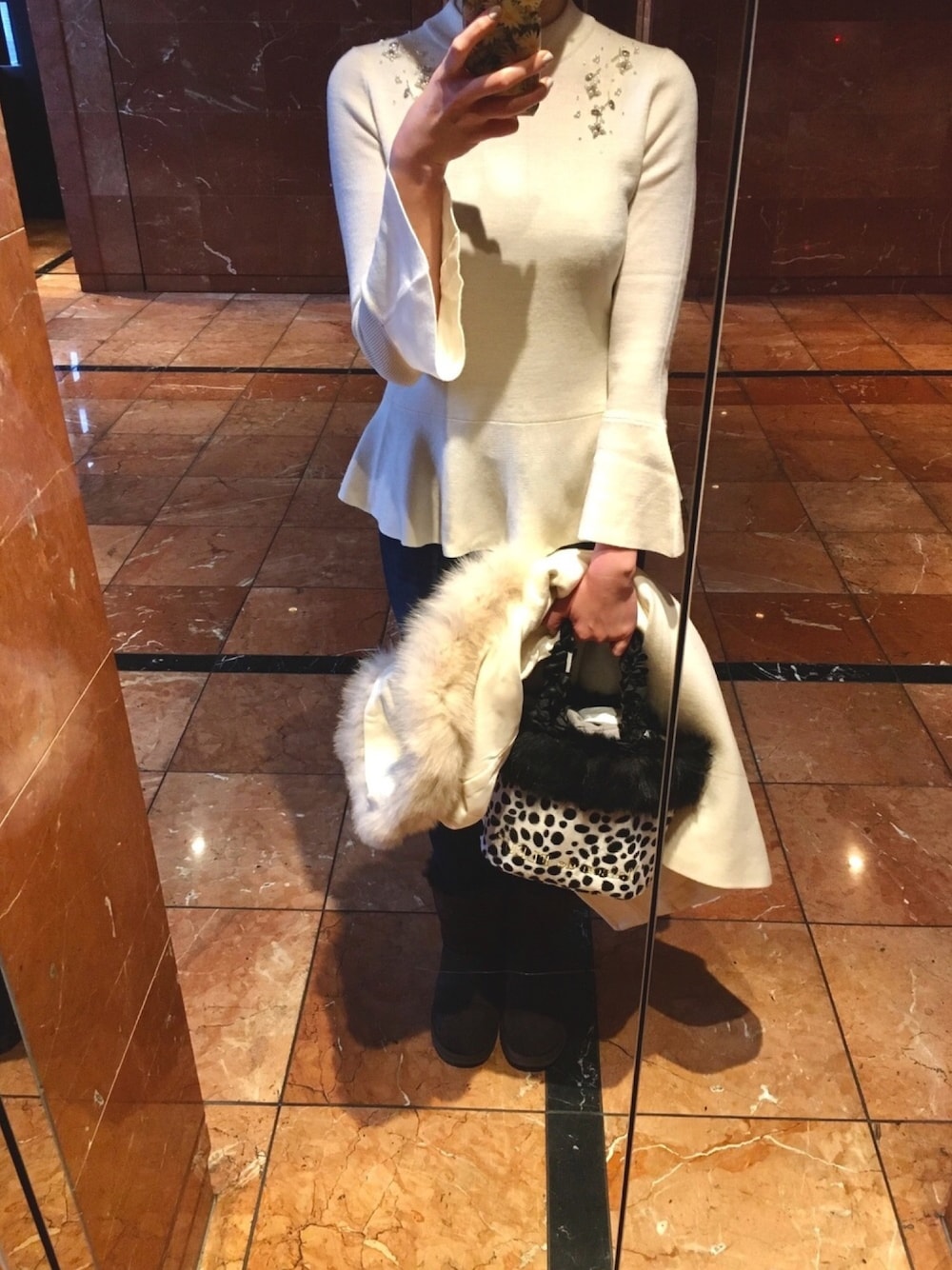 休日のお出掛けコーディネート💕 Aveniretoileのペプラムニットに、DIESELのデニムを合わせました😆💓 デニムにムートンブーツを合わせた、カジュアルコーデ🥾✨