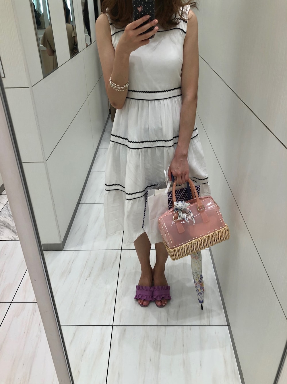 休日のお出掛けコーディネート💖 Aveniretoileのバイカラーのワンピースを着ました🤗♥️ 雨用のバッグにしたのに、結局あんまり雨降らなかった‥☔️