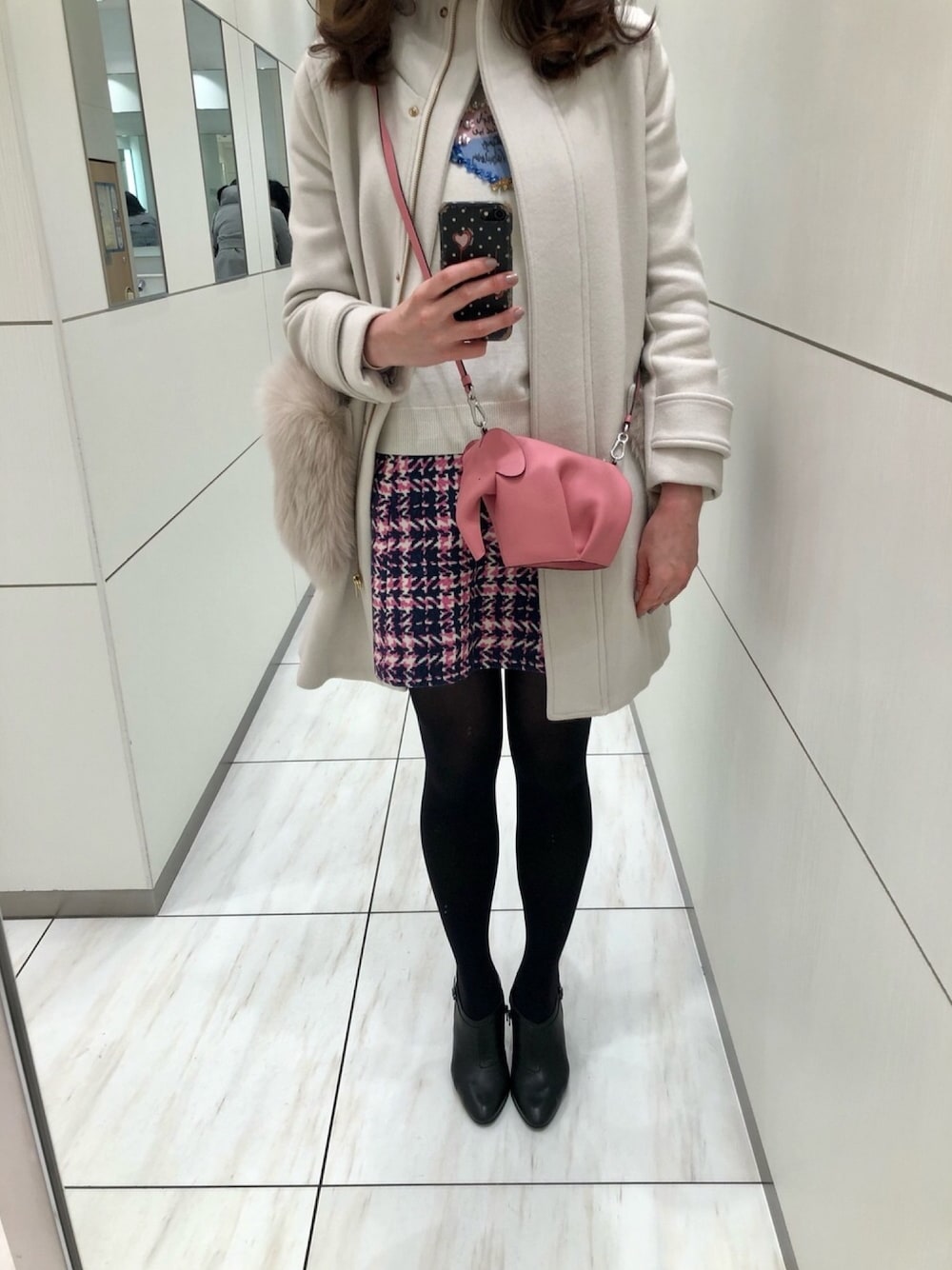 休日のお出掛けコーディネート💗 Chestyのニットに、PRADAのチェックスカートを合わせました👯♀️💕 フェミニンなコーデにしてみました🥺👍🏻✨