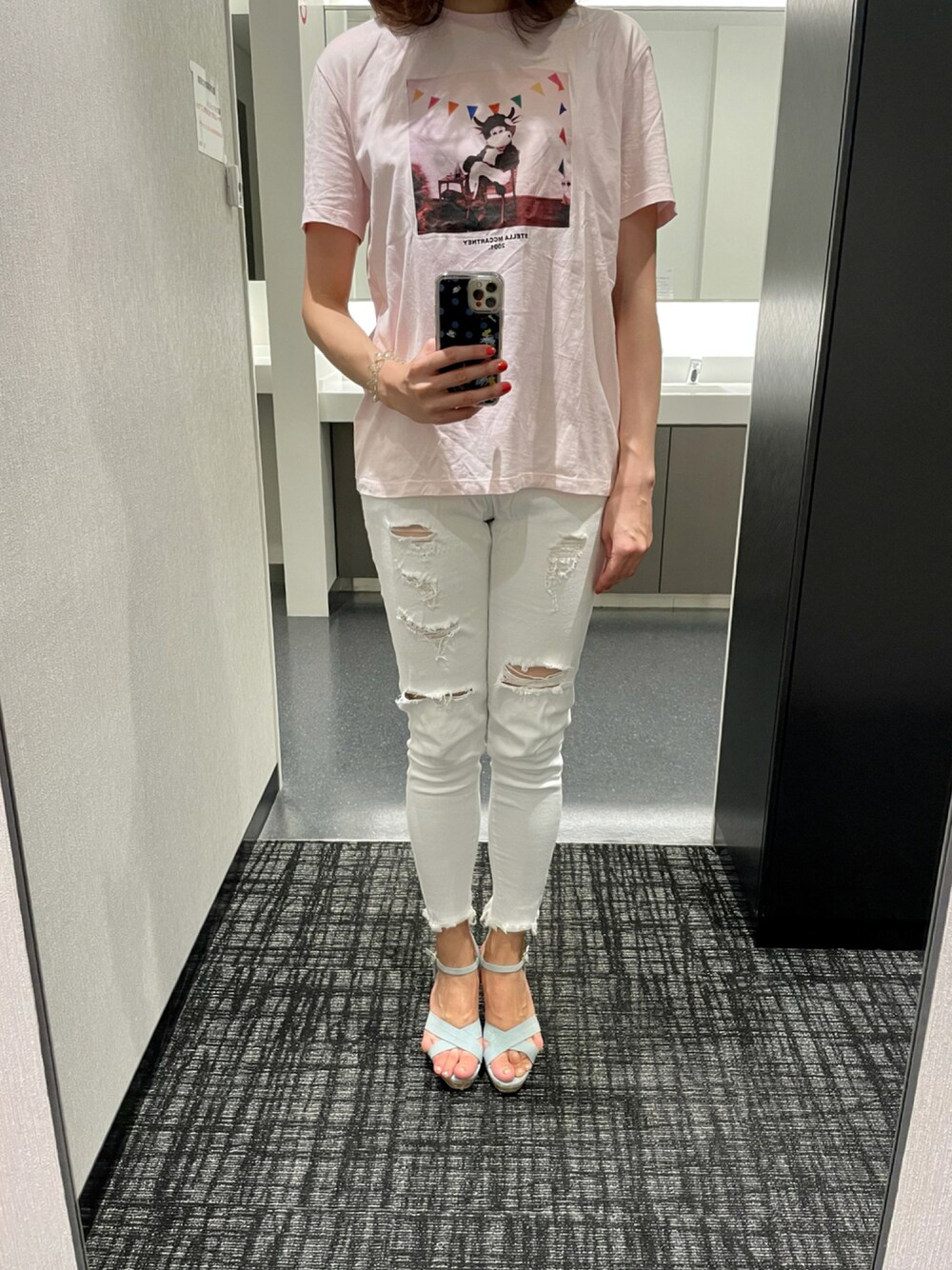ある日の通勤コーディネート★ Stella McCarteyのTシャツに、Chuuの-5kg jeanを合わせました👼🏻💓 内勤dayだったので、楽ちんカジュアルなコーデにしてみました⭐️